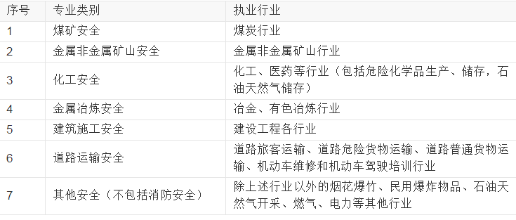 各专业类别注册安全工程师执业行业界定表
