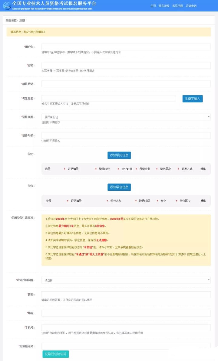凡是首次使用此系统的报考人员都必须先进行用户注册,注册成功后才能进行报名等后续操作。