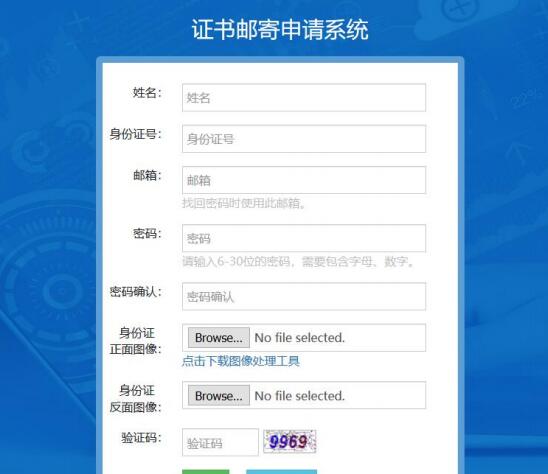 输入注册时的身份证号、登录密码,以及验证码,点击“登录”进行登录信息验证。如果验证失败,系统将有相应提示。如果验证通过,则跳转到邮寄申请操作界面。具体如下图: