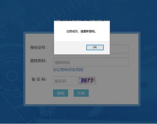 考生如实填写基本信息外,还需要上传身份证的正、反面图像。信息全部录入完成后,点击页面下方的“注册”按钮进行注册。如果成功,系统将会有相应的提示,如下图: