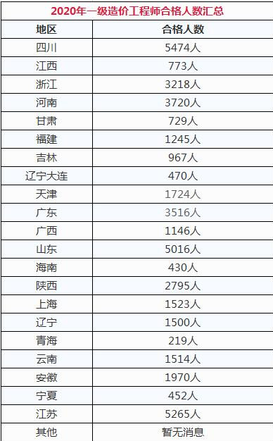 2020年各省一级造价工程师的合格名单尚未完全公布,暂时以四川省为例分析一下今年的通过率。