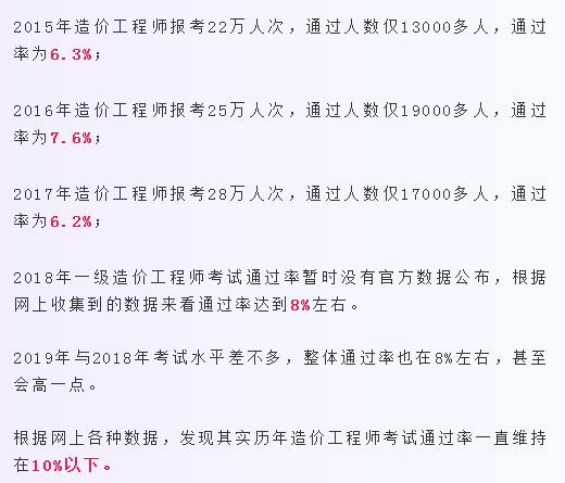 其中,考试通过的人员包括一定的增项考试、免两科以及大量的二次考试考生,所以如果只统计一次性通过2020年造价考试的人员,通过率数据将会更低。